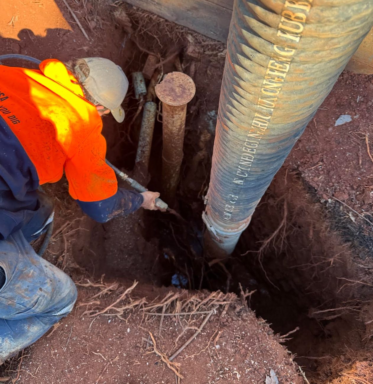 In August 2025, JDF Plumbing & Drainage successfully repaired a sanitary sewer drainage pipe in Narangba, after it was damaged by invasive tree roots. After we diagnosed this blocked sewer pipe using our CCTV drain inspection camera, we used Vesa Vacuum Excavations to help excavate the trench to repair the sewer line.